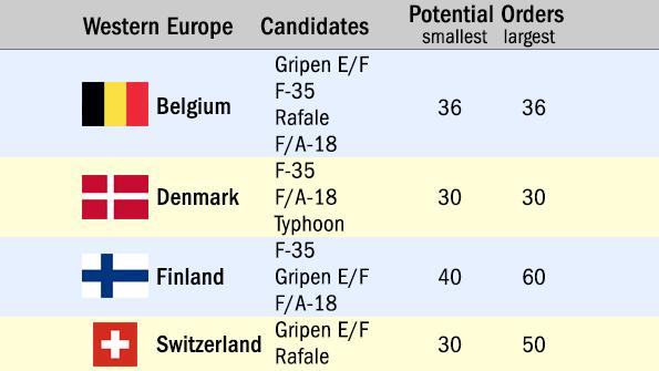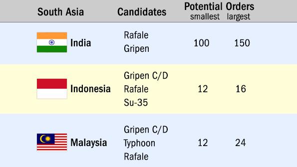 June 05, 2015Fighter aircraft orders are seldom predictable, but an Aviation Week analysis suggests that competitions over the next decade could result in sales of 400-600 aircraft. Those numbers will be influenced by economics, global and domestic politics—Russian actions are driving the Eastern Europe market—and to some extent by aircraft type, given differences in unit costs. The biggest potential customer, India, is particularly uncertain: the nation will need to replace MiG-21s, MiG-27s and MiG-29s, and wants to fill many slots with the HAL Tejas, but observers doubt whether that plan is practical. Denmark and Kuwait could announce choices this year, but many others are delaying decisions until 2018-20.