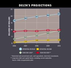 The financial projections airlines develop as they prepare to exit Chapter 11 bankruptcy protection are case studies in optimism, and Delta Air Lines' are no exception. Taking aim at US Airways' $8.4-billion hostile takeover bid, Delta is promising creditors stock in a $9.4-12-billion company with...