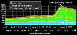 The number of commercial aircraft in long-term desert storage has declined during the past year, but it's a trend due more to an increase in aircraft being permanently grounded than to the growing number of transports being returned to revenue service, according to an aviation research firm. There...