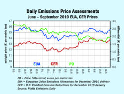European Union emissions allowance (EUA) prices drifted through most of September but recaptured the losses later in the month as U.K. natural gas prices rallied. EUAs for delivery in December 2010 closed at €15.66 ($21.28)per metric ton on Sept. 28, up from €15.28 on Aug. 31. Prices were robust at...