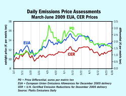 European Union emissions allowance (EUA) prices fell in the first half of June, as four-month highs achieved in May began to attract profit-taking. December 2009 EUAs closed above €15 ($21.20) per metric ton of CO2 equivalent several times in May, helped higher by rising crude oil prices. Benchmark...