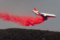 An experiment in using a large transport for aerial bombardment of wildfires has been called off in California, at least temporarily, after a converted DC-10 clipped treetops while battling a mountain blaze and had to make an emergency landing. The aircraft, owned by 10 Tanker Air Carrier and shown...