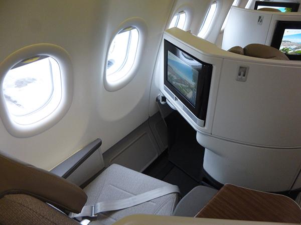 TAP's A330neo has 34 business-class seats in a 1-2-1 configuration. Seat-pitch is 42 in.