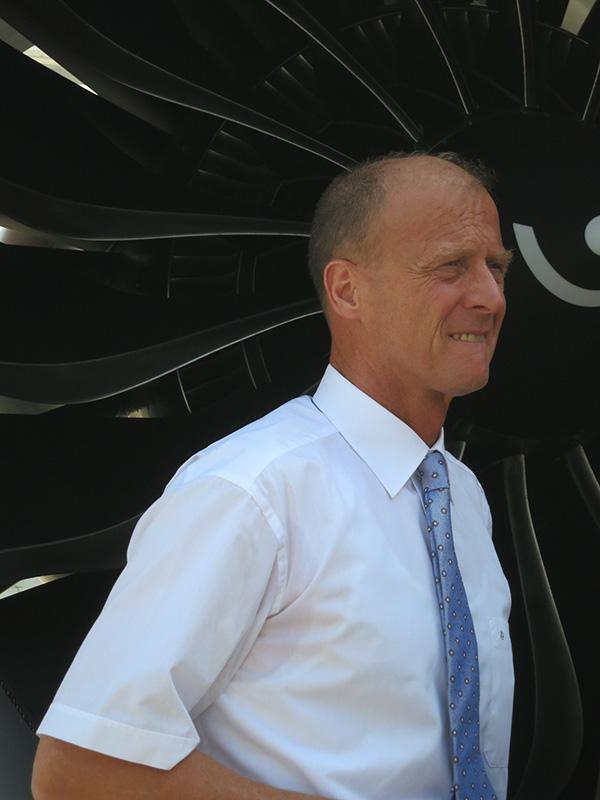 CFM International CEO Gaël Méheust in front of the A320neo's LEAP 1A engine.
