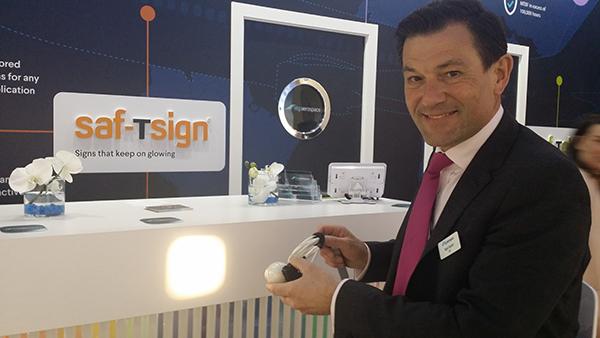 UK-based aircraft lighting specialist STG Aerospace has certified a square reading light and secured floor path lighting contracts with China Eastern Airlines and Icelandair. Pictured: STG Aerospace CEO Nigel Duncan demonstrates the square-beam liTeMood LED reading light at AIX 2017.