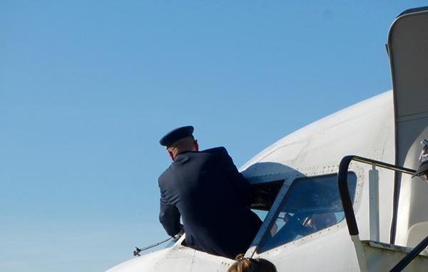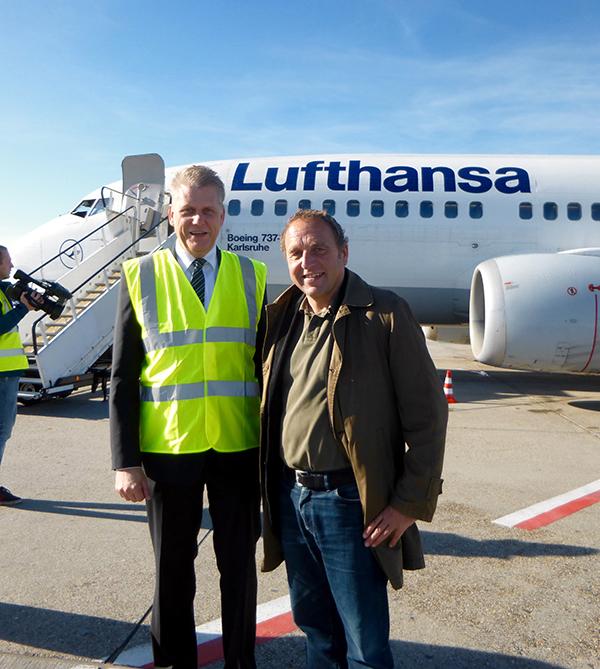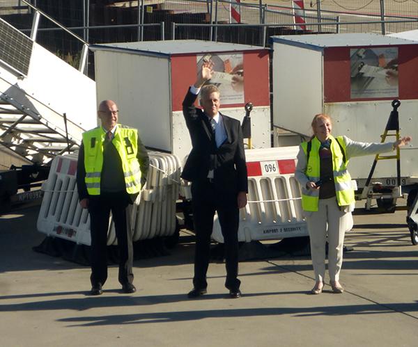 Harry Hohmeister, executive board member and chief officer-hub management, waves farewell to the 737.