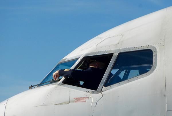 Head of Lufthansa Boeing 737 fleet, Ulrich Pade, personally cleans his cockpit window.