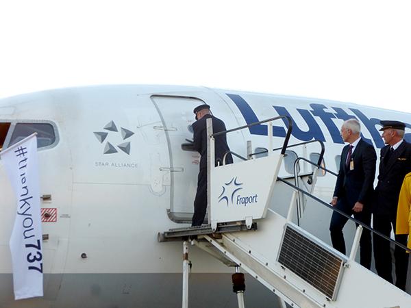 After touch down in Frankfurt, the airport also paid tribute to the Lufthansa 737 fleet, which completed nearly 5.5 million landings.