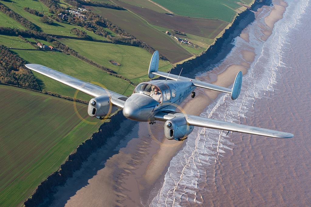 A Miles Gemini twin makes a run for home down the Norfolk coast.