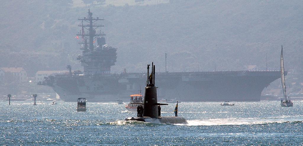 Swedish navy submarine Gotland, one of the world’s first diesel-electric boats to feature an auxiliary air-independent propulsion system, was based in San Diego in 2005-07, acting as an aggressor for the U.S. fleet. Results are classified, but it is believed that the small and ultra-quiet Gotland acquired numerous through-the-periscope images of aircraft carriers—including the Reagan, seen here—whose crews had no idea it was there.