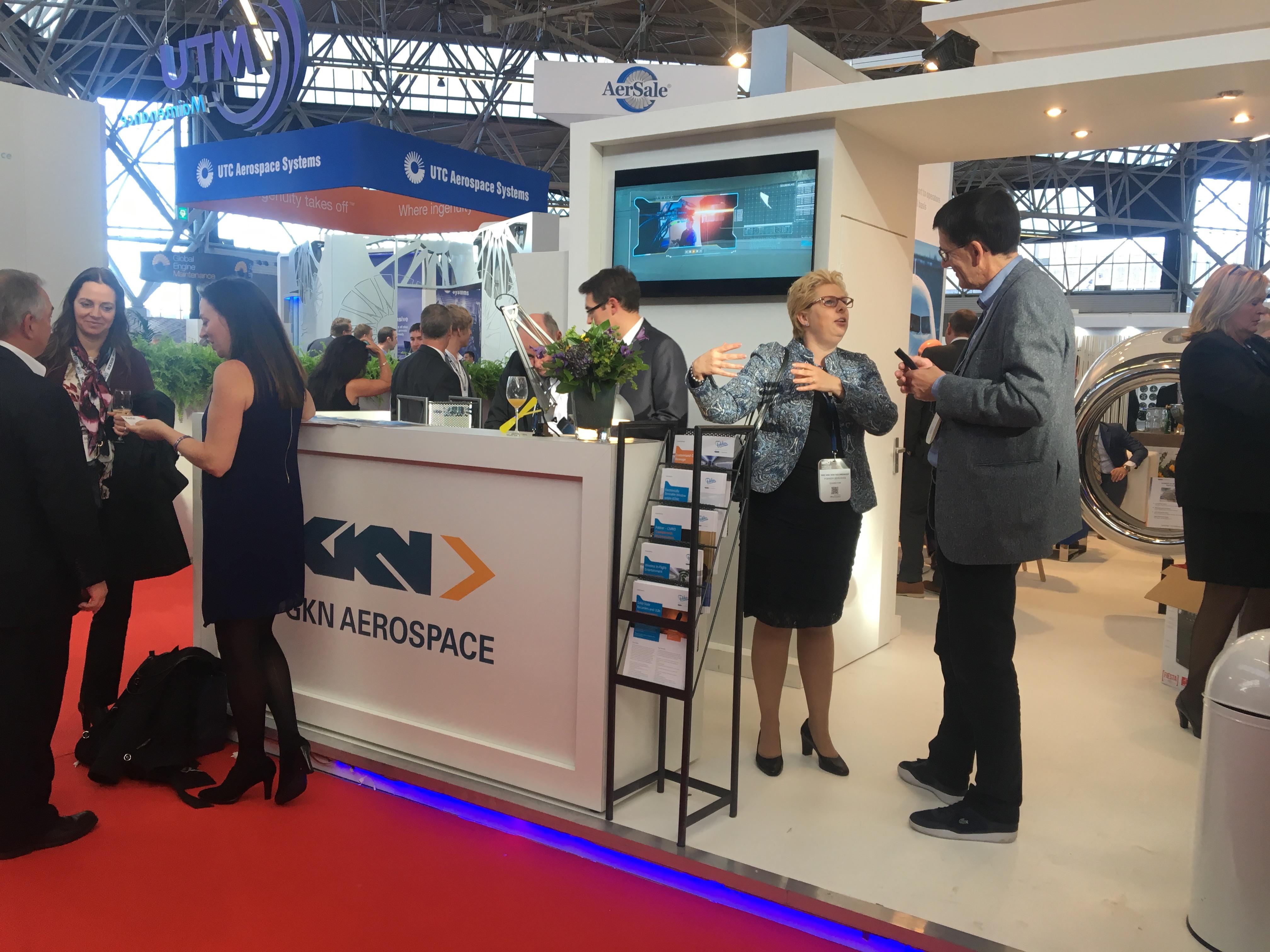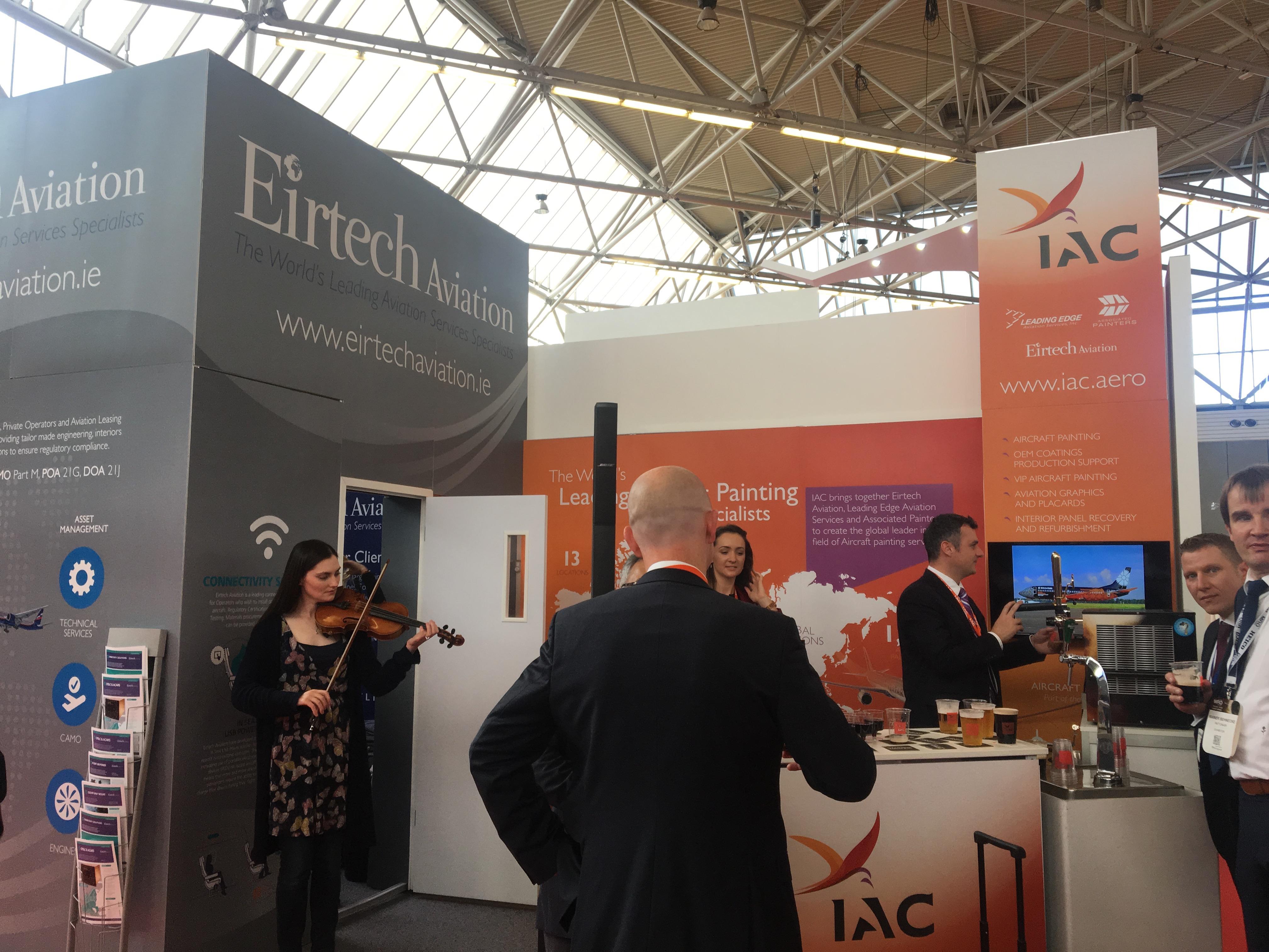 Eirtech (Booth 10-1038), offering design, manufacturing avionics and electronic cables, has a violinist playing to entertain visitors.