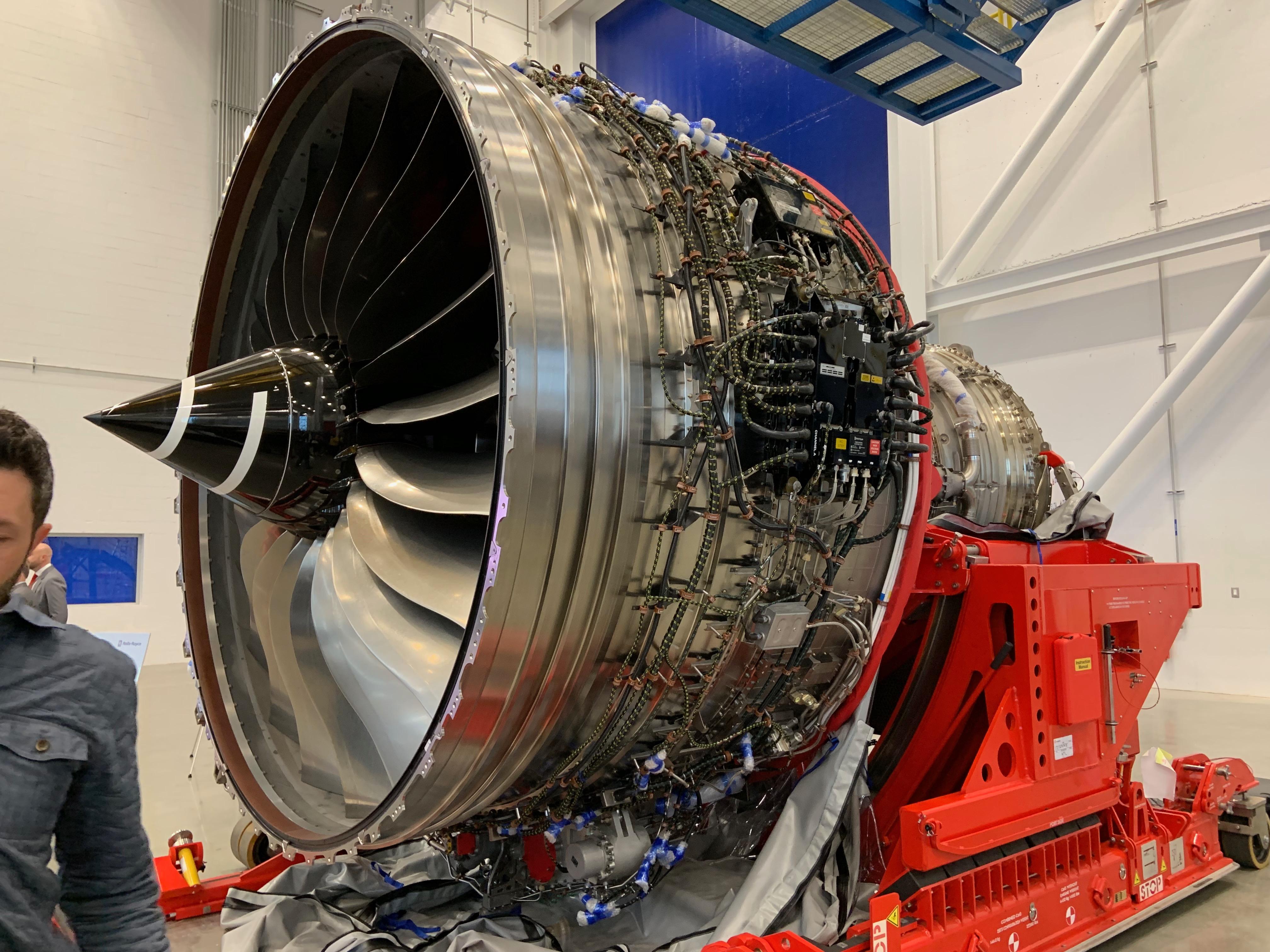 Here is a Rolls-Royce Trent XWB, which powers the Airbus A350s and delivers 75,000-97,000-lb. thrust.