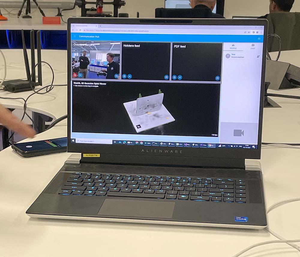 While wearing the HoloLens headset, a technician can interact with a damaged aircraft part to create a digital twin from photos. The technology uses neural radiance fields, a method powered by deep learning, to construct a 3D representation of a scene from two-dimensional images.