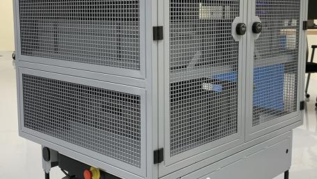 Watch as the Autonomous Mobile Robot transports parts around Collins Aerospace's Singapore facility.