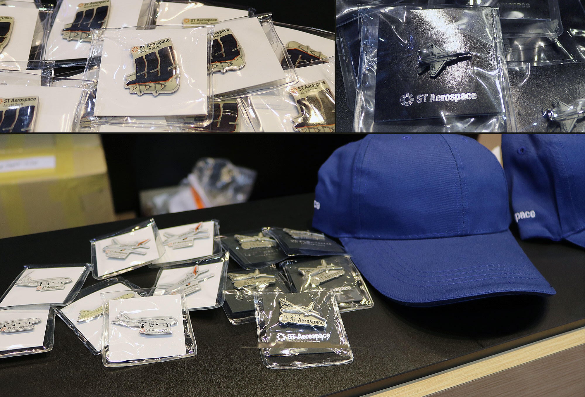 In addition to baseball hats, ST Engineering Aerospace is handing out an assortment of aviation-themed pins at booth 713.