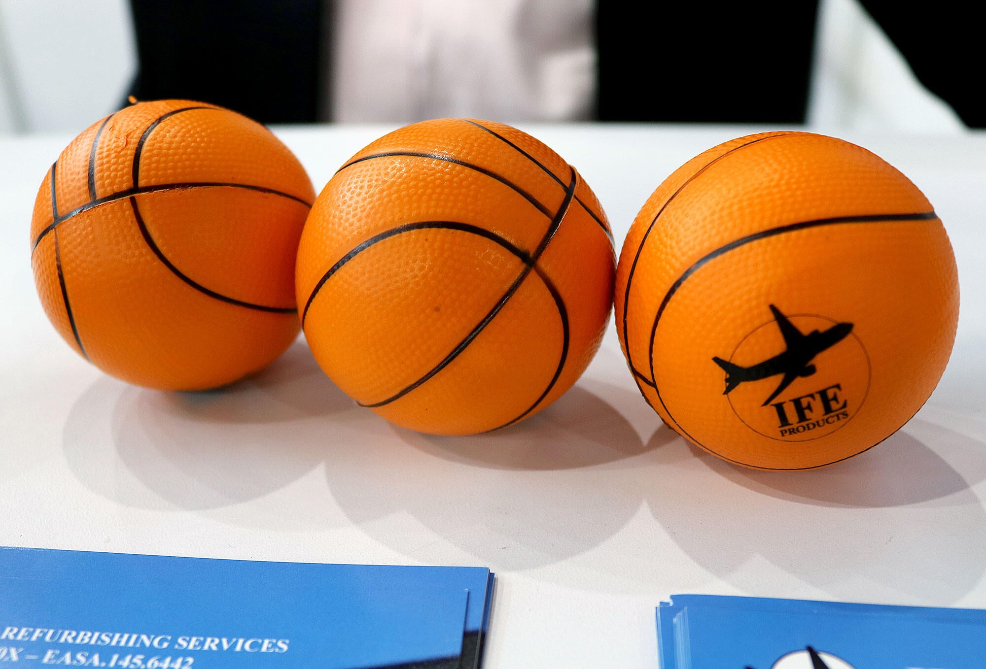 Miniature basketballs are up for grabs at IFE Products’ booth, #942.