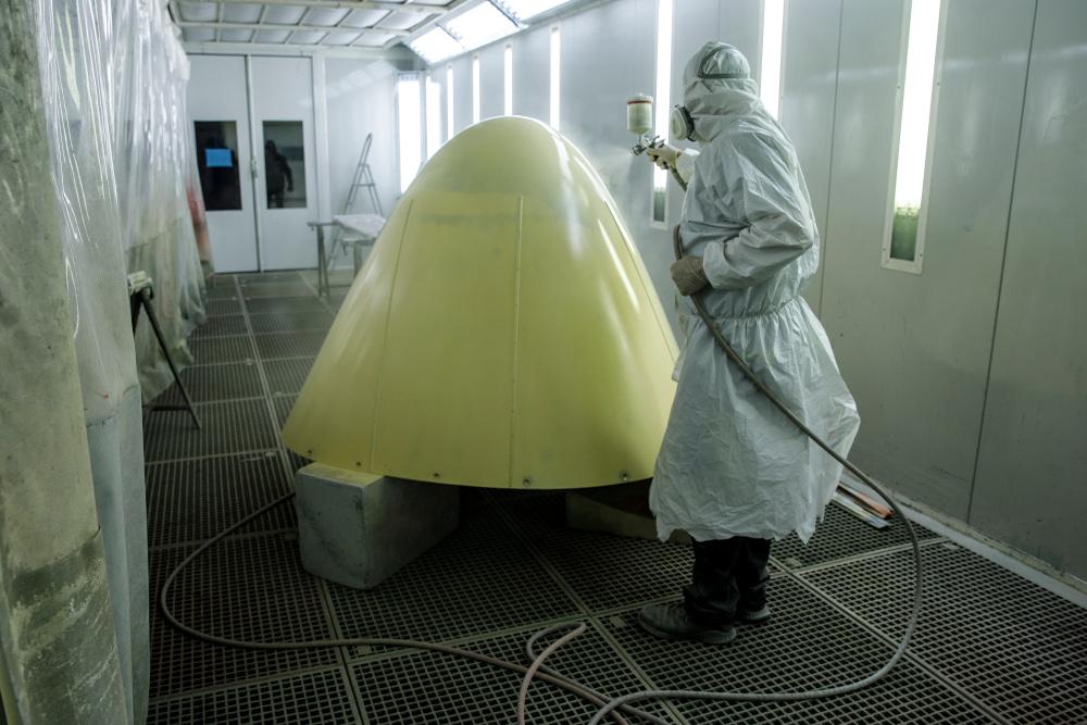 Pictured is one of two paint booths at Aeroplex's workshop in Budapest. The larger paint booth, measuring at 710 ft.2, is set up to support parts from the base and line maintenance operations. The smaller paint booth, with a volume of 322 ft.2, also has a paint mixing room and ergonomic downdraft sanding table. Aside from paint functions, some of its other workshop services include sheet metal, composites, interior, engine hardware and wheels and brakes, among others.