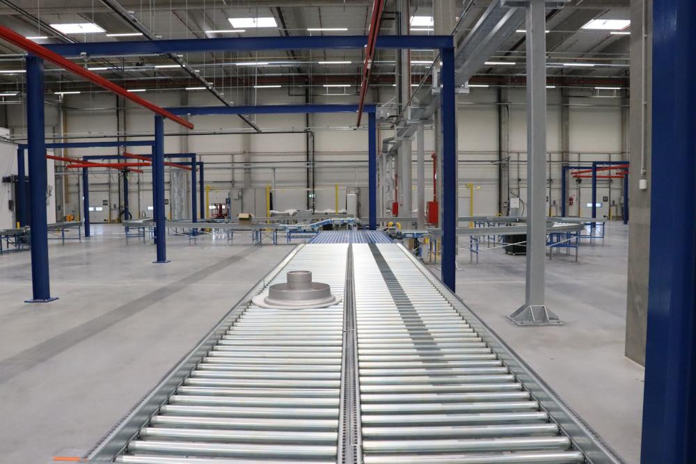 Pictured are the new cranes and the roller conveyor system for the planned wheels and brakes repair shop at Aeroplex Component Repair Center. The facility, located around seven mi. from its main base, is currently undergoing construction and is set to open in October this year.