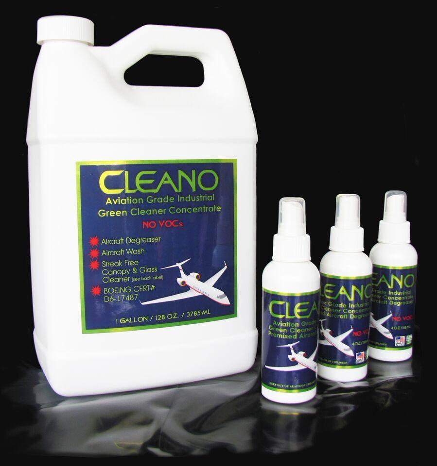 Cleano developed a volatile-organic-compound (VOC) and-chemical-free concentrated cleaner in 2013 and applied for Boeing certification for military specification and civilian applications. In 2014, Cleano was granted Boeing specification D6-17487 certification that includes proof that the product causes no excess corrosion in different exposure settings, acrylic crazing, paint softening or hydrogen embrittlement. In November, Cleano entered into a distribution agreement with Barfield, a manufacturer of aircraft testing equipment, for Cleano’s Aviation Grade concentrate. At $7.50 for 4 oz. to $2,300 for 55 gal., the product can be found on Cleano’s website.