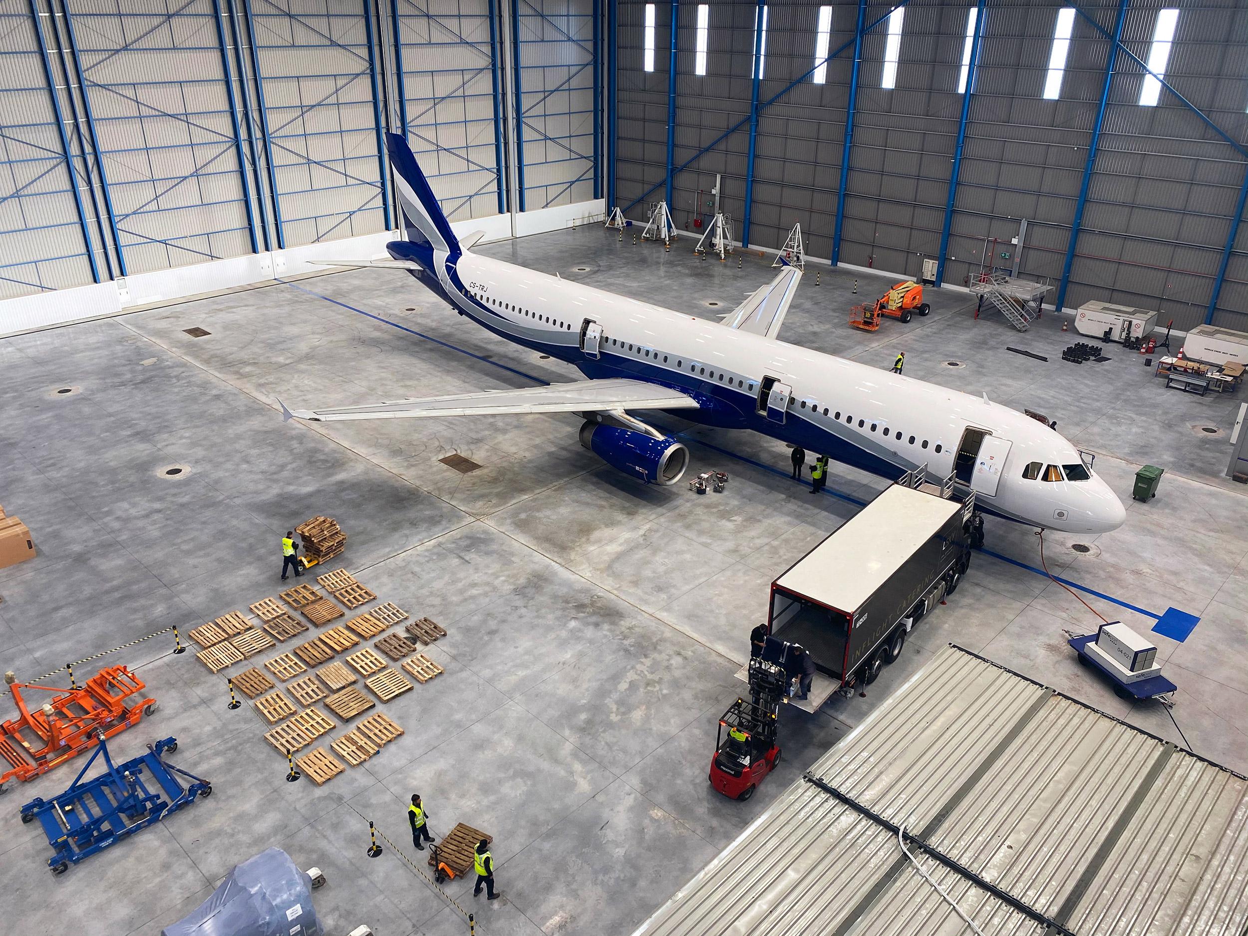 The 9,500 m2 (31,167 ft.2) widebody hangar, which began construction in April 2019, has space for up to three aircraft simultaneously. It also features workshops, a warehouse, offices, training facilities and other support premises. Mesa says it plans to create around 150 jobs at the facility in its first three years of activity.
