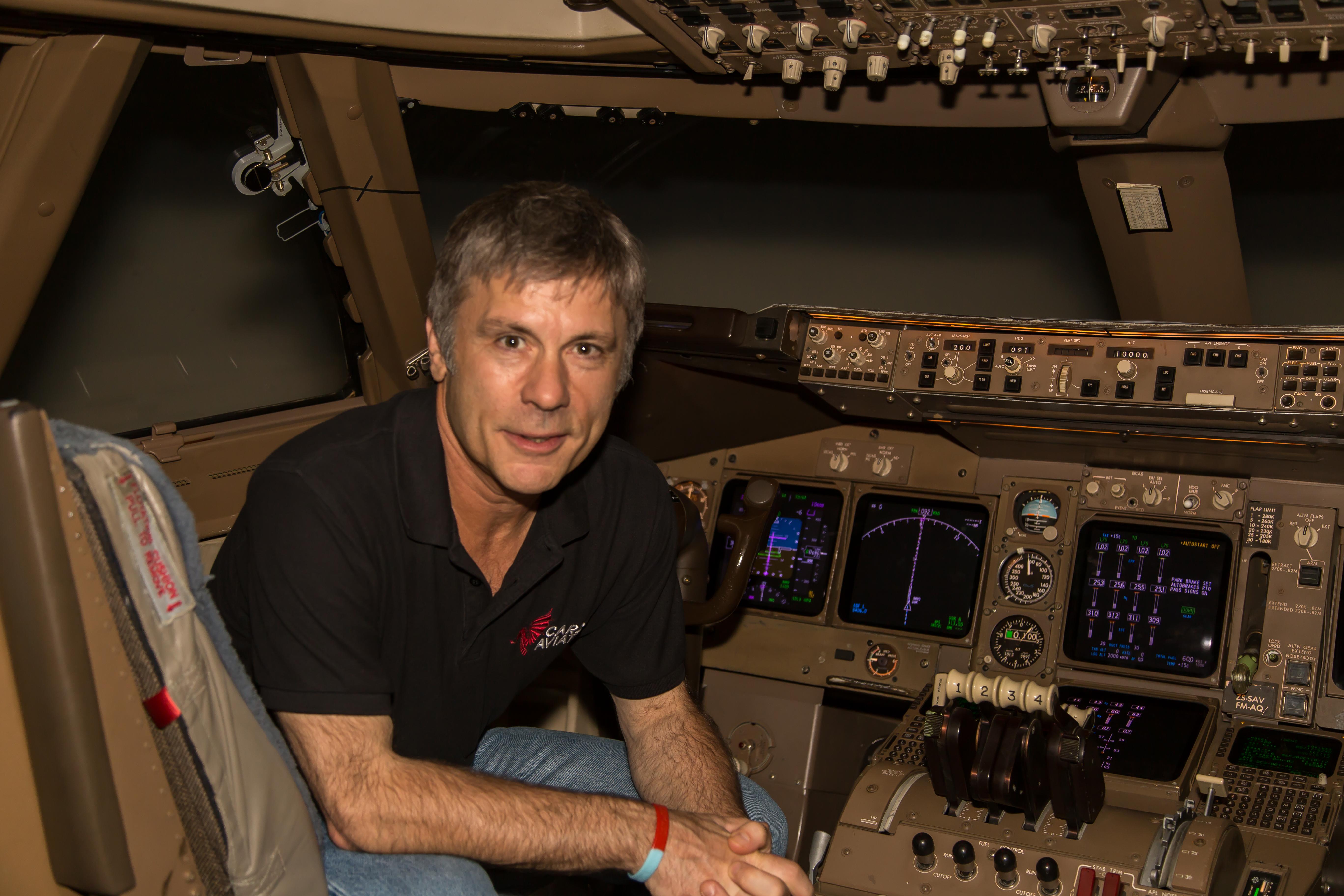 Bruce Dickinson combines his passion for aviation and music as chairman of Cardiff Aviation and lead vocalist for Iron Maiden. He plans to fly the band in a Boeing 747 during its next tour—but beforehand, he's spending time in this 747 simulator to get his type rating.