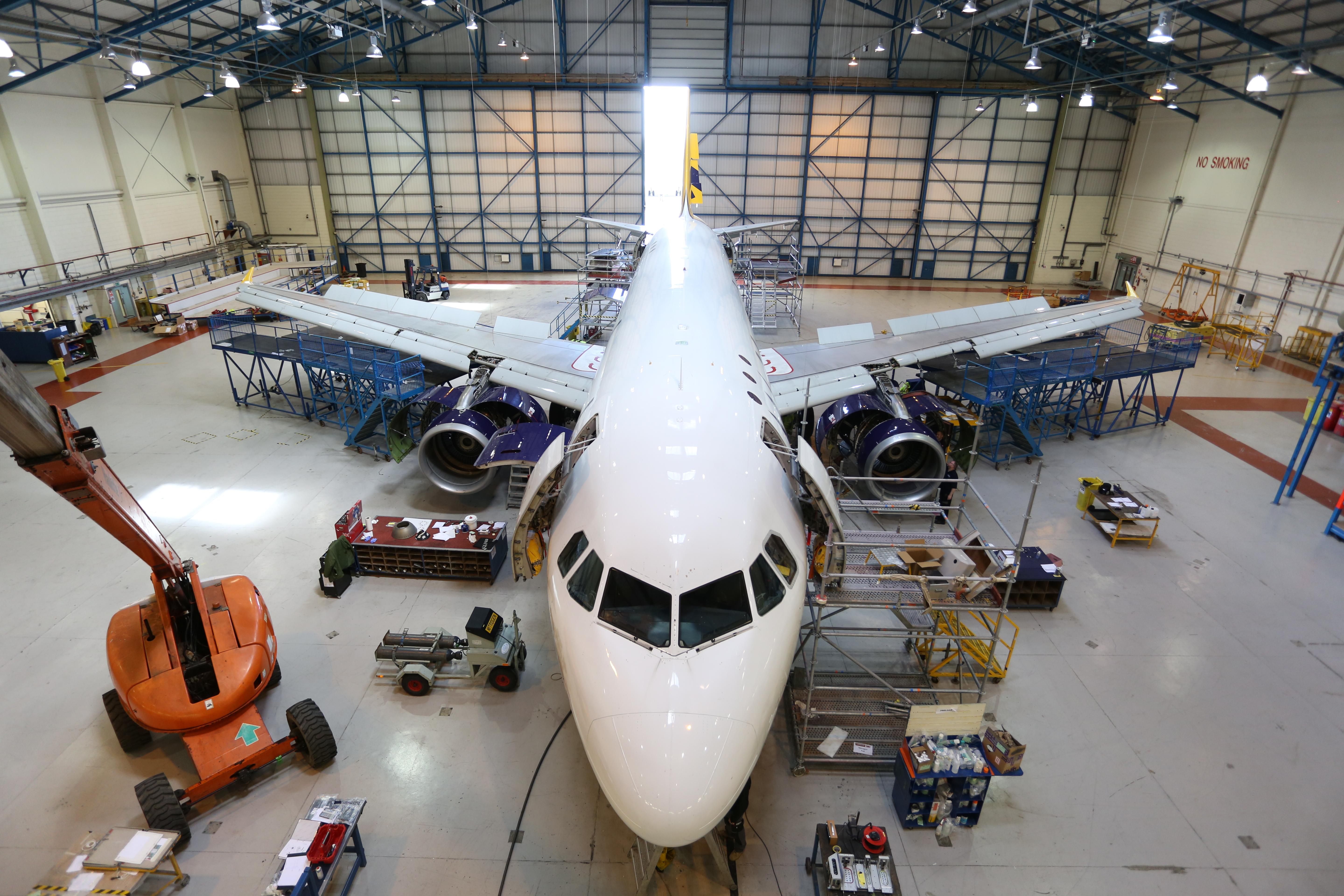 Inside one of Cardiff Aviation's hangar at St. Athan-Cardiff Airport Aerospace Enterprise Zone in South Wales, U.K. It operates 132,000 sq. ft. of hangar and workshop space at the former RAF maintenance base.