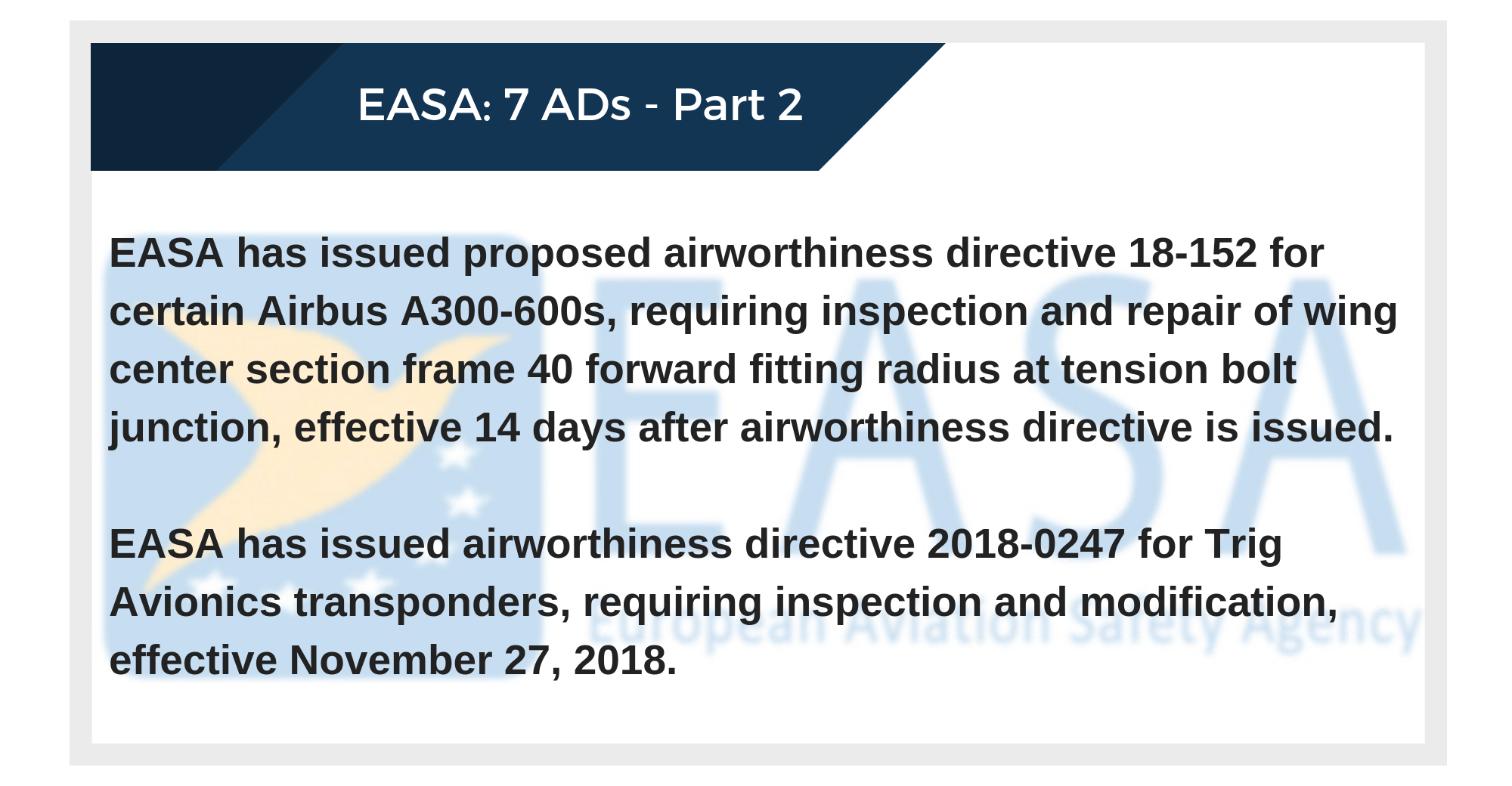 EASA has issued airworthiness directive 2018-0247 for Trig Avionics transponders, requiring inspection and modification, effective November 27, 2018.