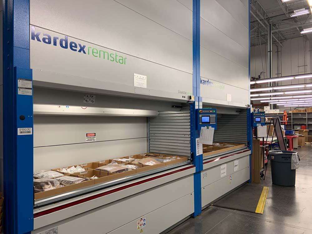 These Kardex Remstar vertical shortage machines house 20,000 parts. Two of the four of this grouping are shown here. With the market growing at a 6-8% compound annual growth rate, BGS aspires to grow its parts business at that rate or slightly higher, says William Ampofo, senior vice president of parts and distribution services and supply chain.