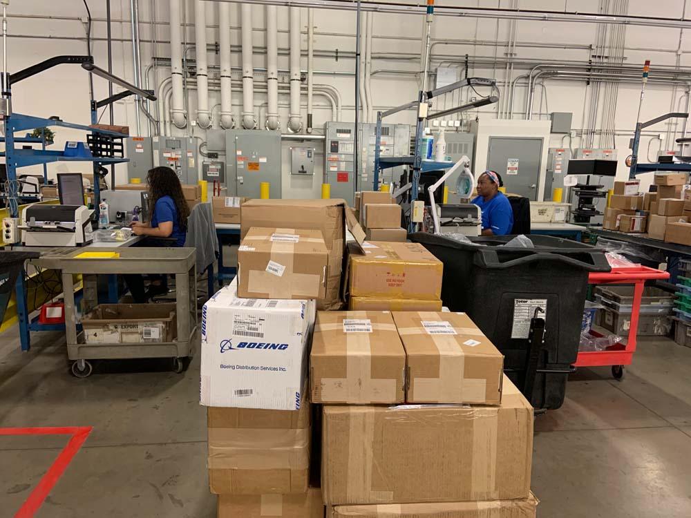 During the pandemic, Boeing started cross training more employees to keep up with staffing needs and found having people trained across functions such as receiving and picking was very beneficial. Now about 50% of its workforce here can move between spots.
