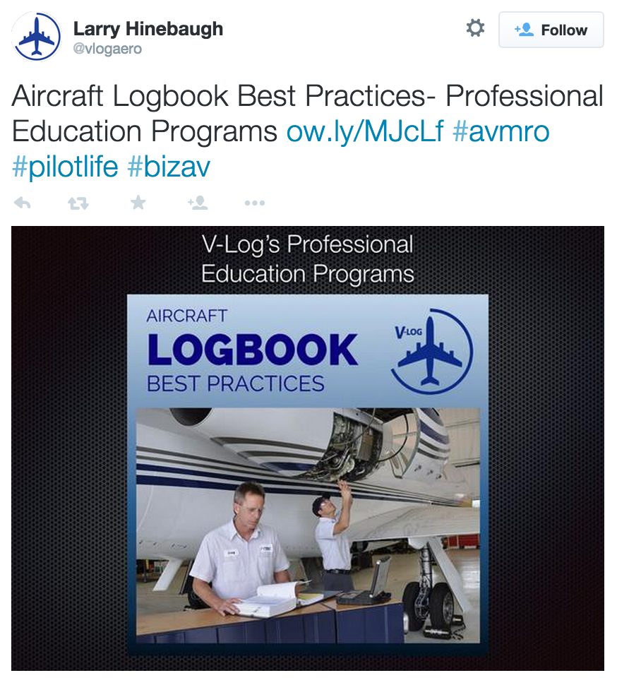 Larry Hinebaugh tweets aircraft logbook best practices.