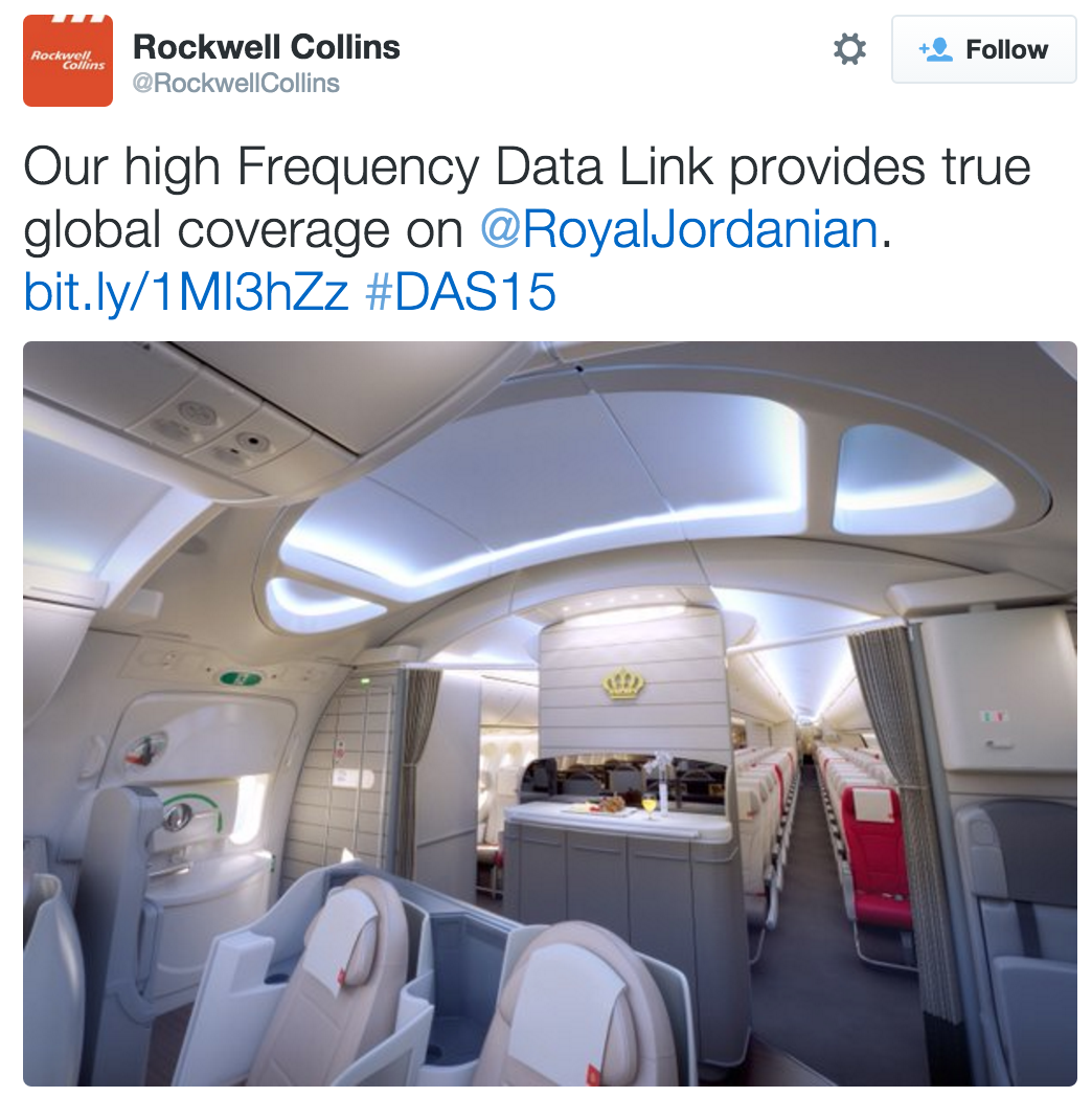 Royal Jordanian Airlines selected Rockwell Collins’ ARINC GLONALink services for airborne data and voice communications.