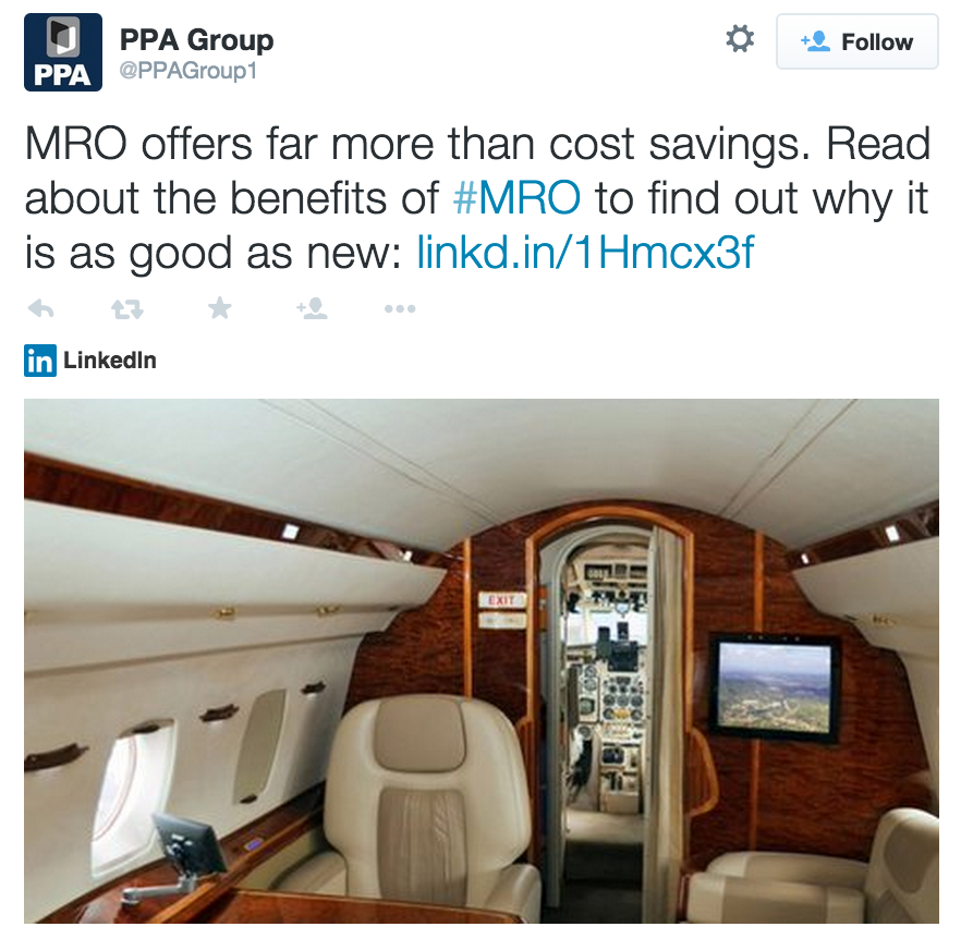 PPA Group tweets a LinkedIn blog post by Peter Gunson entitled, “Why MRO Is As Good As New?” Peter Gunson is the owner of PPA Ltd.