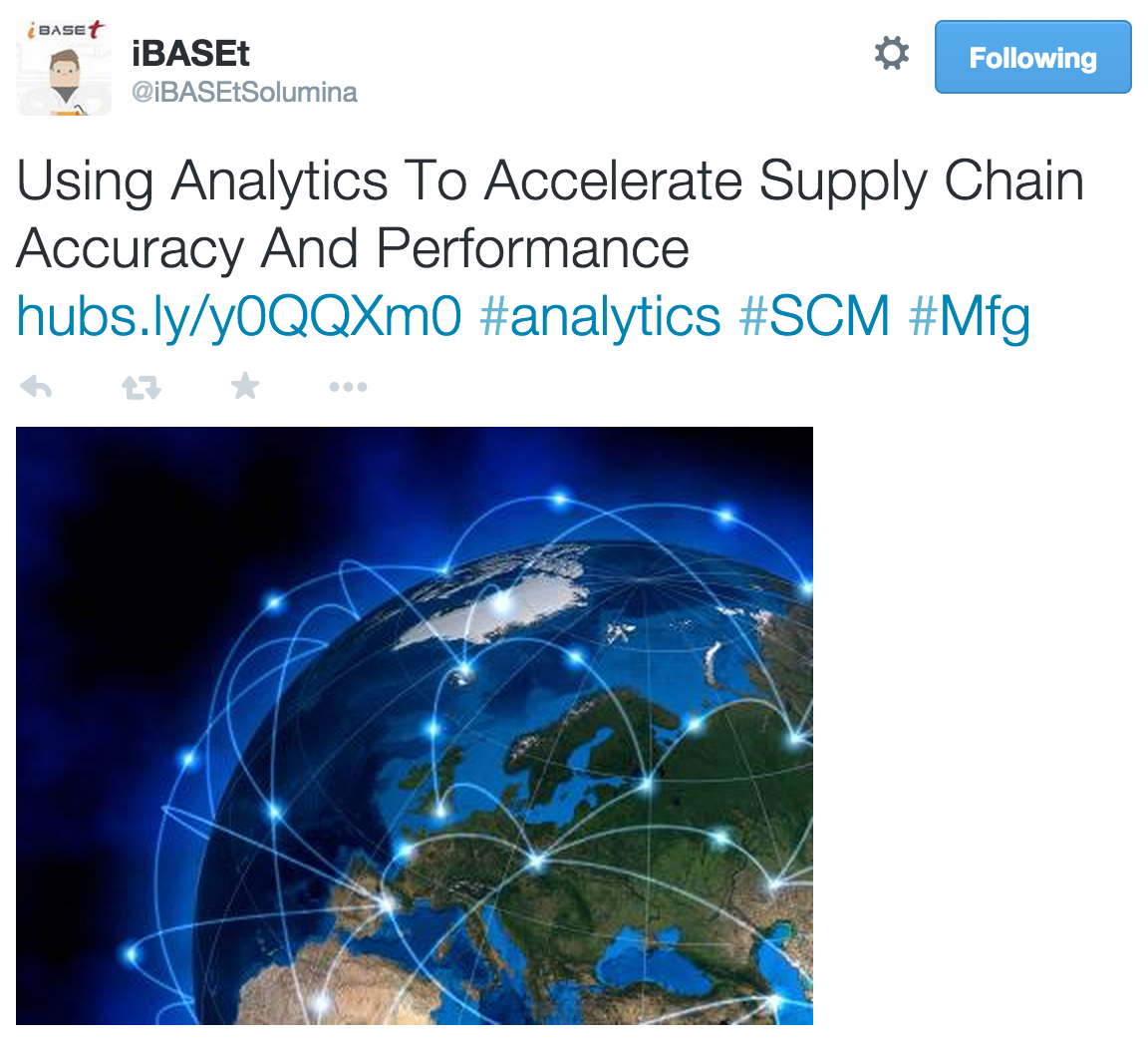 iBaset tweets its new blog post – “Using Analytics To Accelerate Supply Chain Accuracy and Performance.”