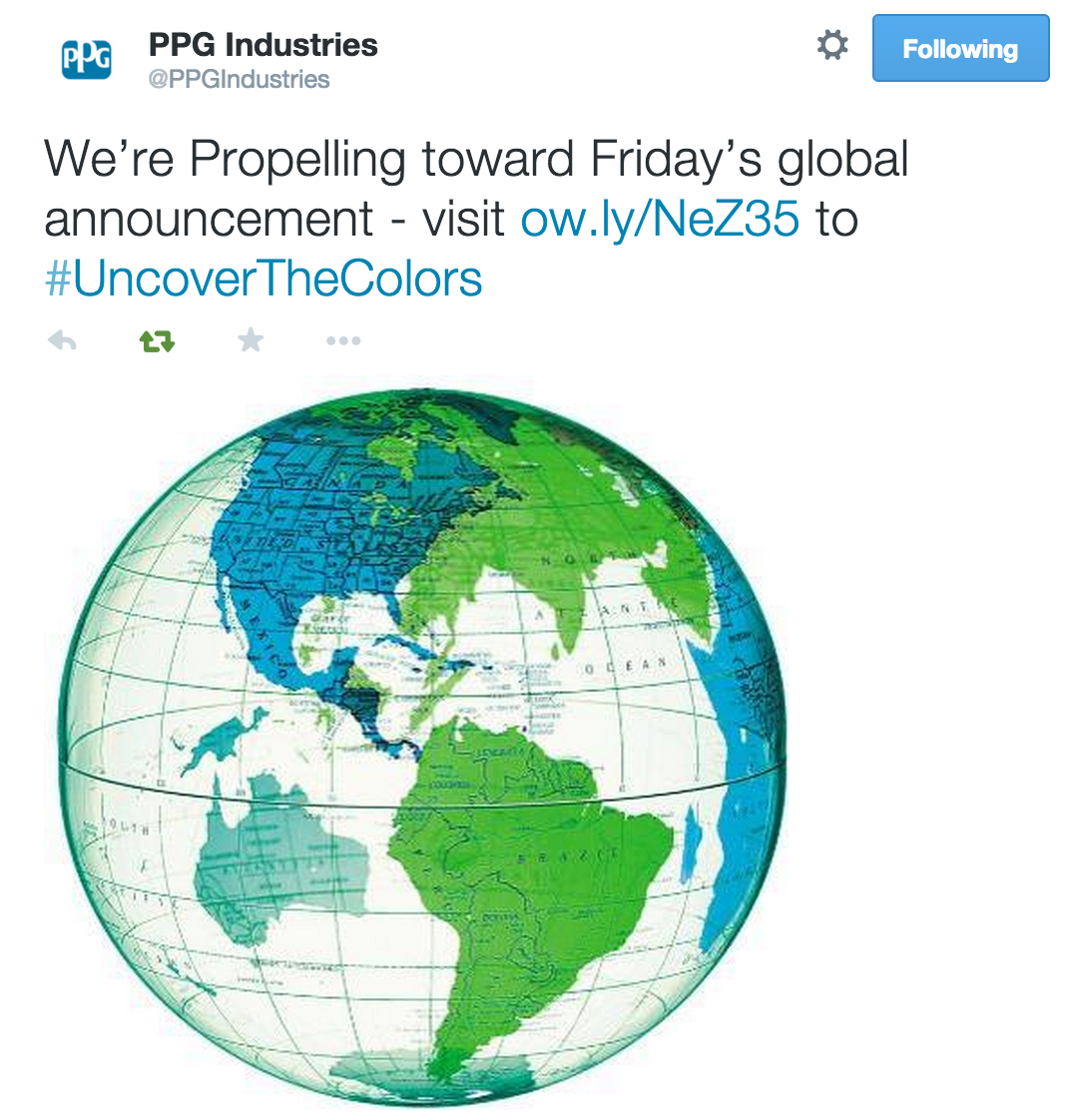PPG Industries is conducting a social media campaign for its upcoming Friday announcement. Click here to answer questions to fill in the puzzle pieces.
