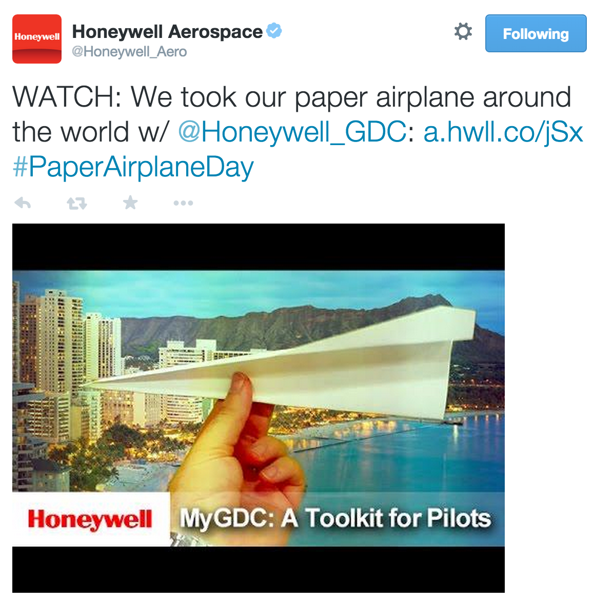 Honeywell Aerospace celebrated “Paper Airplane Day” by taking its paper airplane across the world in a hyperlapse video.
