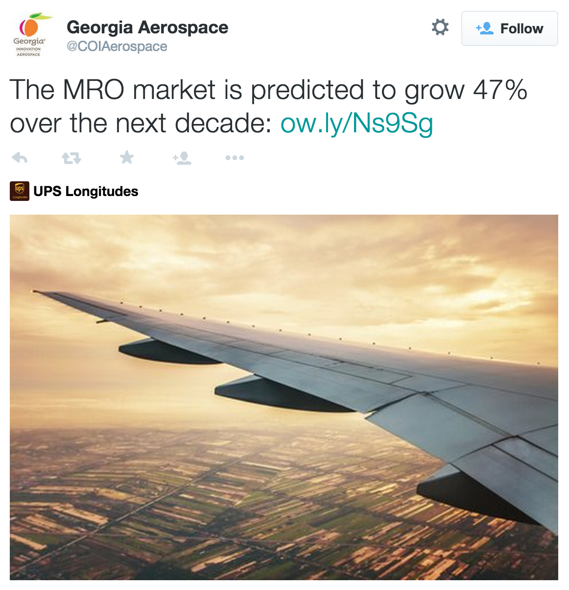 Georgia Aerospace shares UPS Longitudes’ blog post on the MRO Market entitled, “Challenges, Opportunities in Shifting Aerospace MRO Landscape.”