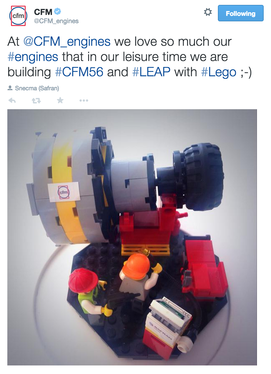CFM Engines building CFM56 and LEAP Lego engines.