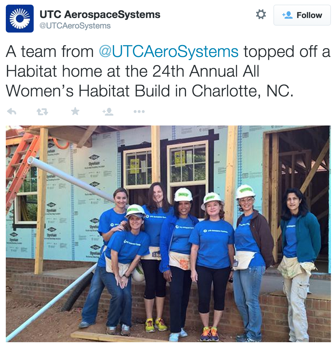 UTC Aerospace Systems volunteered at the 24th Annual All Women’s Habitat Build in Charlotte, NC.