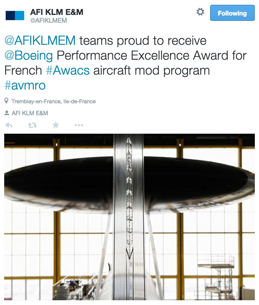 Boeing awards AFI KLM E&M a Performance Excellence Award.