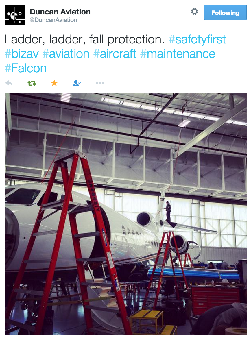 Duncan Aviation tweets a photo about ladder protection in aircraft hangars.