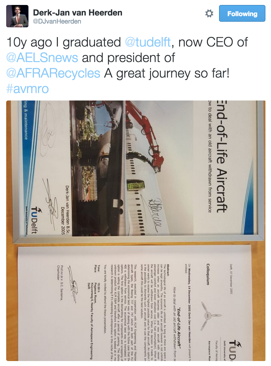 Aircraft Fleet Recycling Association President Derk-Jan van Heerden shares a piece of his MRO history.