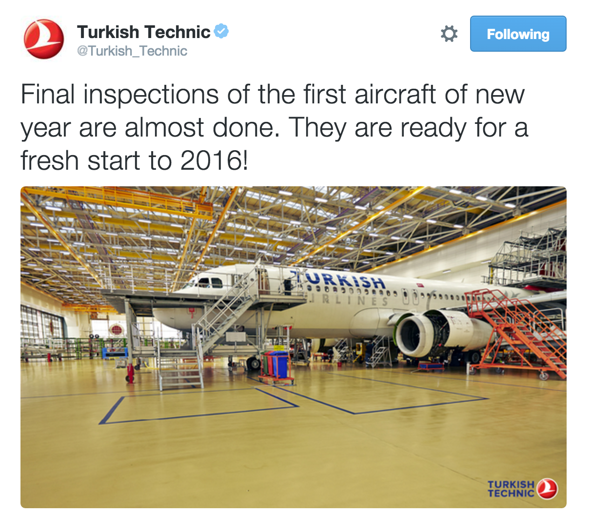 Turkish Technic posts a photo of its final inspection of its first aircraft in 2016.