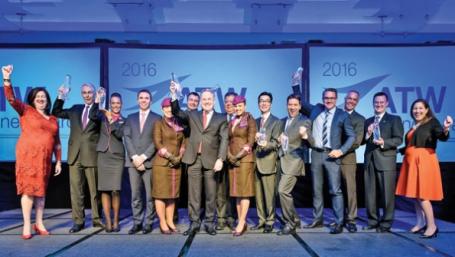 Etihad Airways president and CEO James Hogan and IATA CEO and DG Tony Tyler were among those honored Monday at the Air Transport World 42nd annual airline industry achievement awards in Singapore.