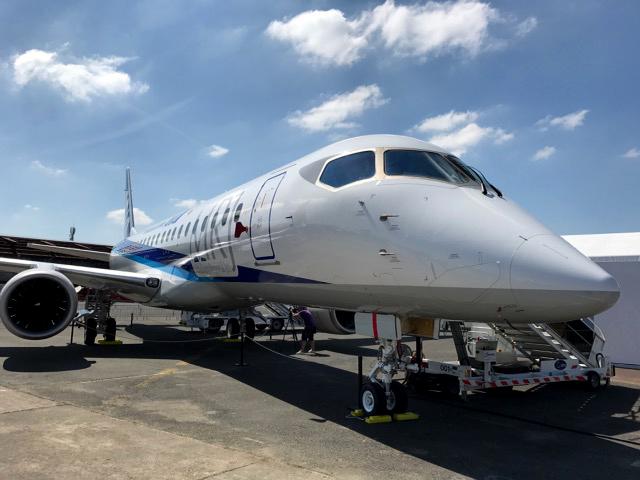 Mitsubishi was showing off its MRJ 90 in the colors of lead customer, Japan's ANA.