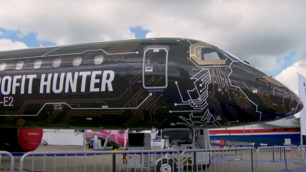 Embraer's E195 E-2 'Profit Hunter' arrived at this year's Paris Air Show in new livery, but how much longer will the aircraft retain its name? Also, Mitsubishi is showing its rebranded MRJ, the SpaceJet at the show. Watch as our editors discuss the commercial air transport market at Le Bourget.