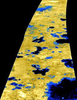 Scientists studying the shapes of 75 radar-dark patches in the northern hemisphere of Saturn's moon Titan are leaning toward the theory that an Earth-like evaporation/condensation process is the most likely source of methane in the moon's atmosphere, rather than some sort of cryovulcanism that...
