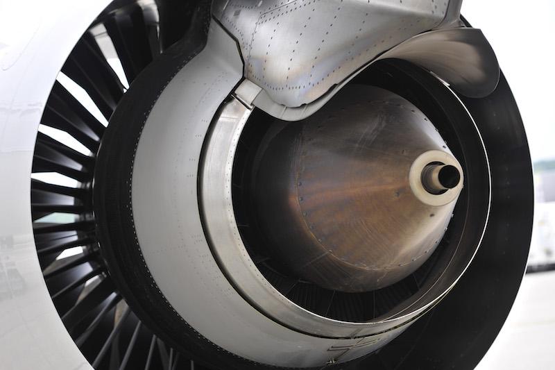 The gear-driven fan shown here is prominent on this Comlux-operated Airbus ACJ TwoTwenty - powered by Pratt & Whitney's PW1500G turbofan.