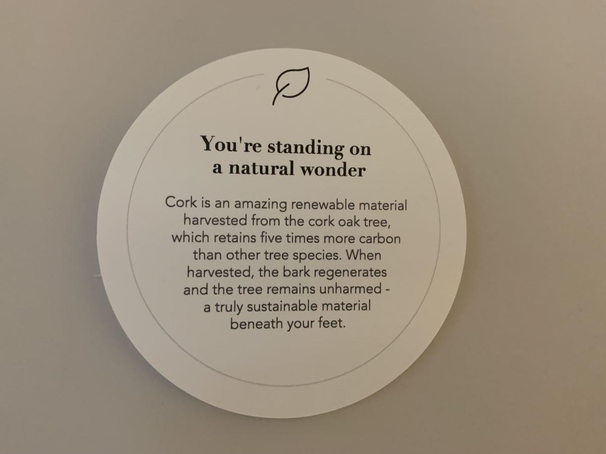 This natural material is “truly sustainable” says the nearby explanation. That’s something we can all drink to. Credit: Aviation Week/Lee Ann Shay