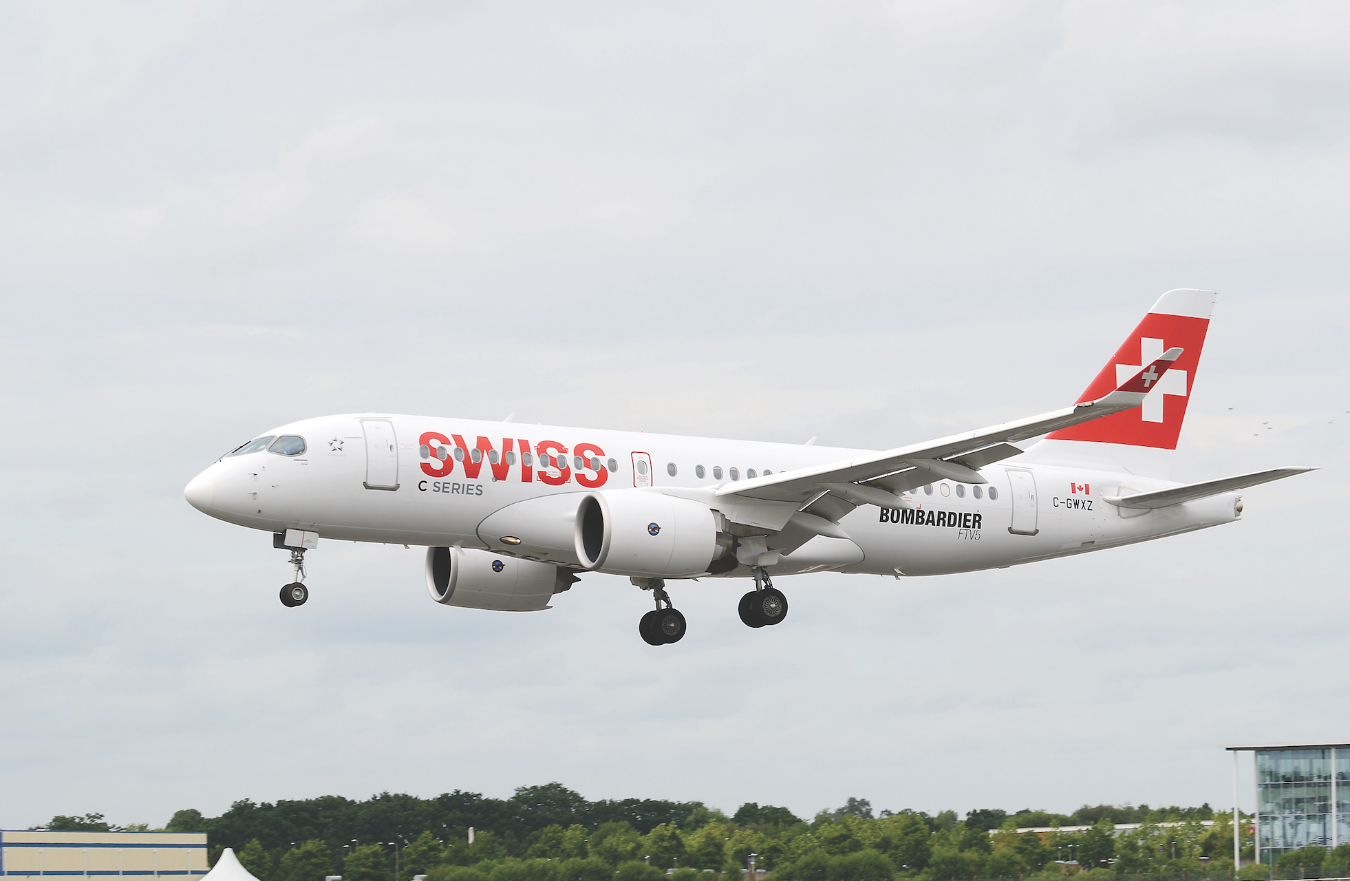 Bombardier’s strategy in its high-stakes poker game seems to be paying off. Delta’s order in April was secured at a price – estimates of the discount offered to the carrier for their firm order of 75 with options for a further 50 range between 50 and 75% of the list price – but should give the program enough momentum to see the Canadian company mount a sustained challenge to Airbus and Boeing. The aircraft here is the fifth prototype, in Swiss Global Air Lines colors: it is not the first aircraft of the Swiss order, which was delivered in June and is due to make its entry into service on Friday.