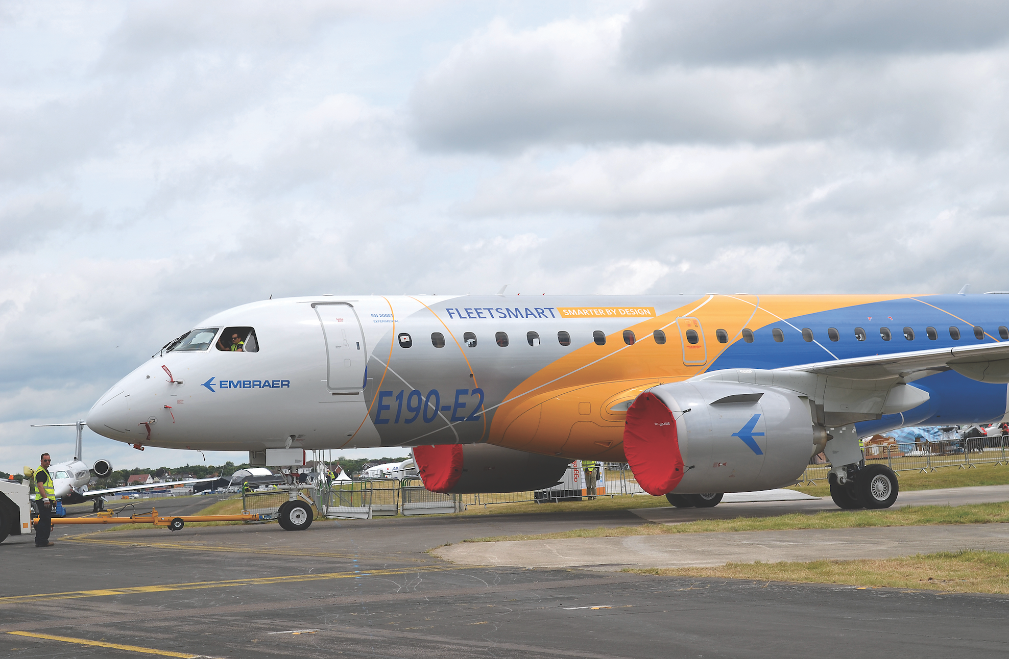 Coming to the show for the first time less than two months after its maiden flight, Embraer’s E190-E2 is the first of three re-engined and re-winged versions of the popular “E-Jet” series to be developed by the Brazilian manufacturer. The E190-E2, along with the next family member, the E195-E2, is powered by Pratt & Whitney’s PW1900G geared turbofan, a version of the C Series engine, while the E175-E2, the third variant, will be equipped with the smaller PW1700G derived from the Mitsubishi MRJ’s PW1200G. Entry into service of the E190-E2 is expected in 2018, while the E195-E2 and E175-E2 are expected to debut in 2019 and 2020, respectively.